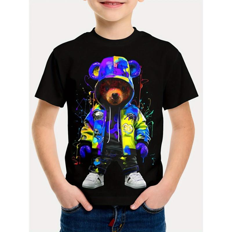 Летняя Мода Мальчики Тренд 3D Цифровая Печать Футболка Крутая Многоцветная Детская Одежда для Мальчиков от 2 до 9 лет Детский Топ в Стиле Аниме