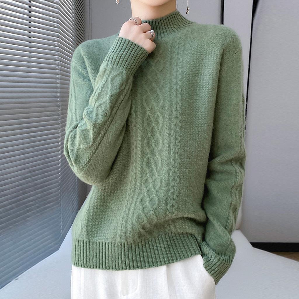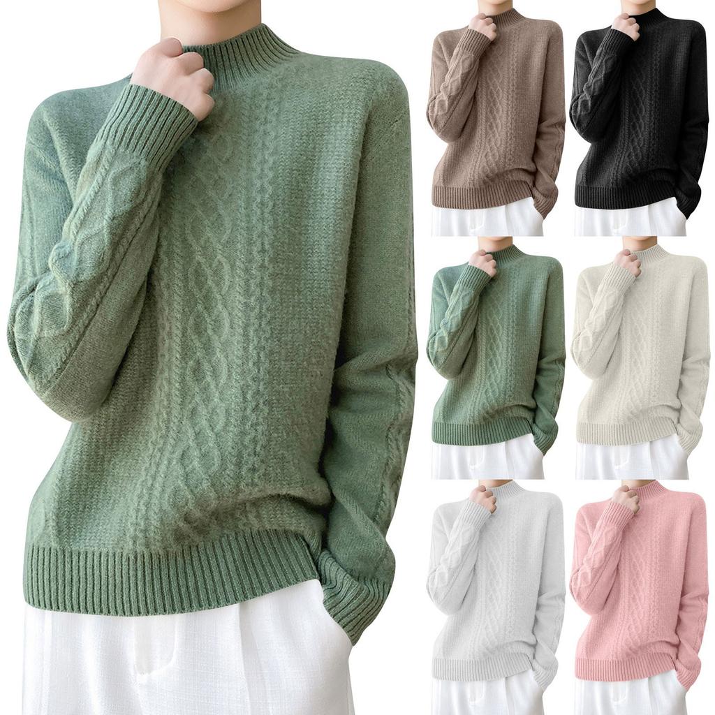 Женский вязаный свитер с длинными рукавами и витым узором, топ с высоким воротником и половиной воротника