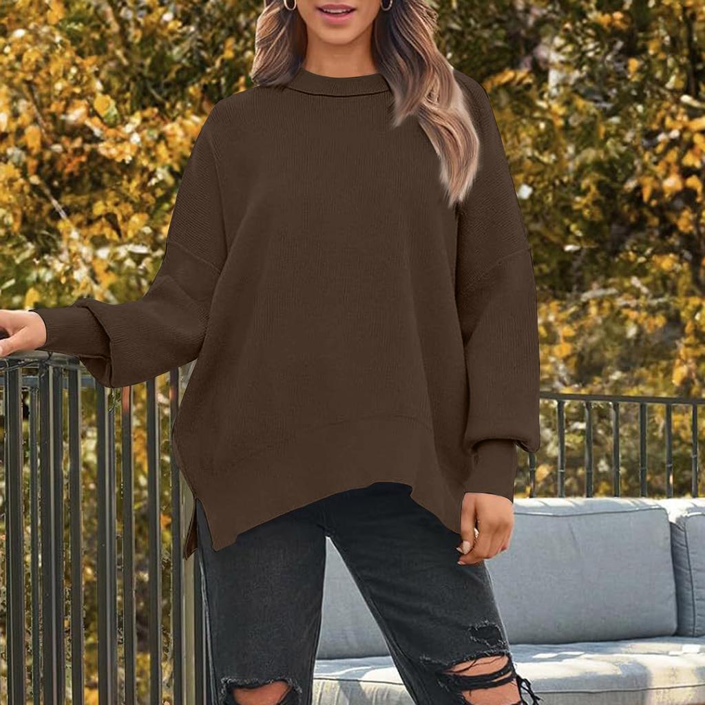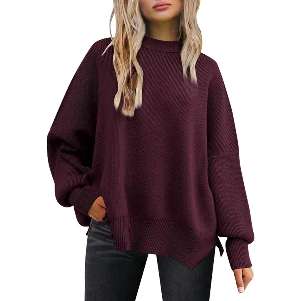 Женский осенний свитер с круглым вырезом, заниженными плечами, широкими плечами и длинными рукавами, большой вязаный пуловер с боковыми разрезами, пуловер, свитер, осенне-зимний свитер, топ
