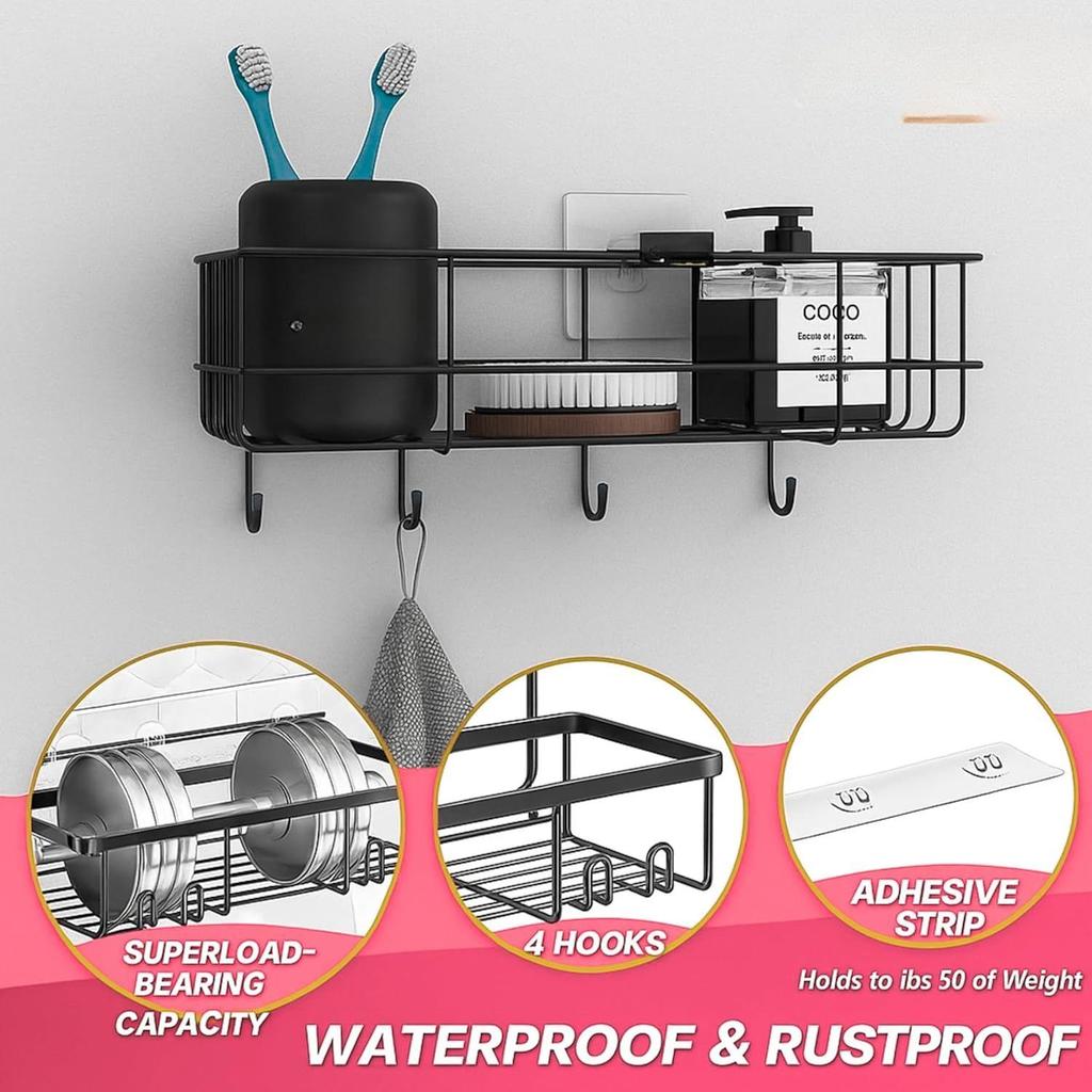 𝐎рганайзер для ванной без сверления : Установка за минуты с прочной самоклеящейся основой, не требуются инструменты или сверление. Идеальное решение для арендаторов или тех, кто избегает повреждения стен.
