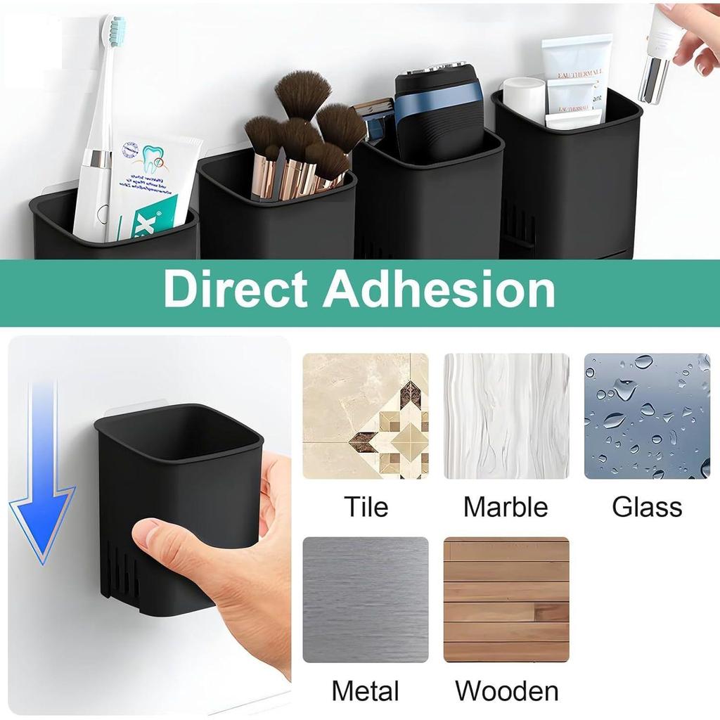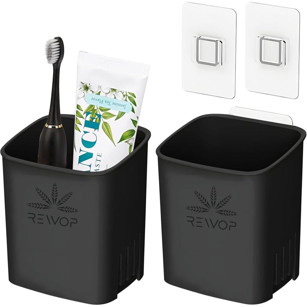 Держатели зубных щеток для ванной комнаты(Упаковка из 2 шт.), Пластиковый настенный самоклеящийся держатель для зубных щеток, зубной пасты, бритвы и кисточки (2, Черный, Настенный)
