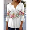 QICED Весенне-летняя мода Женская одежда Цветочный принт V-образный вырез Короткий рукав Плиссированная Пуговичная футболка Базовый слой