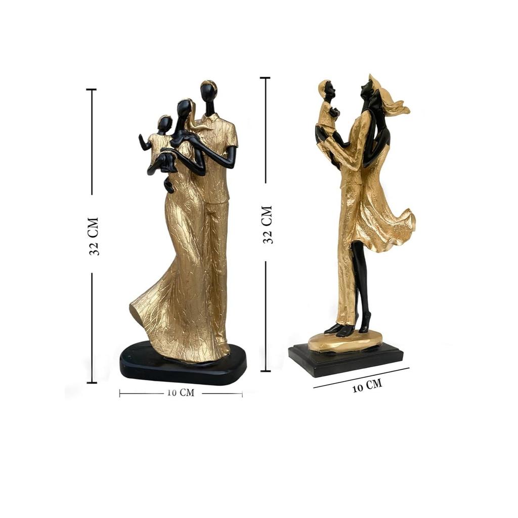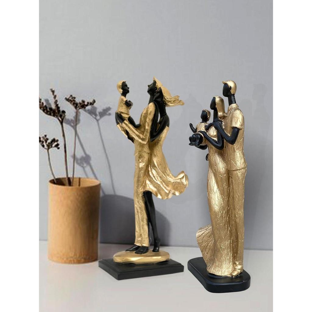 Стильные золотисто-черные статуэтки из смолы для пары с ребенком для домашнего декора (Упаковка из 2 шт., черный и золотой)…