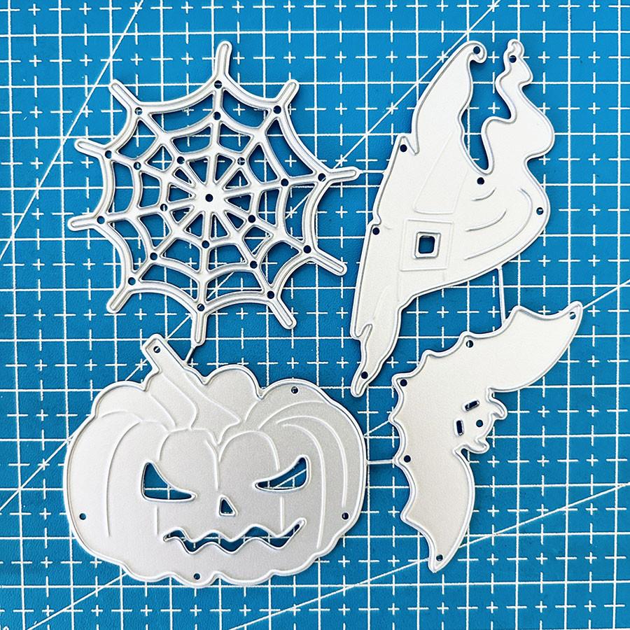 Хэллоуин Шляпа Летучая мышь Металлический режущий штамп, Тыква Бумажные вырубки, Паутина Режущие штампы для изготовления открыток, Металлический штамп Трафарет для DIY поделок