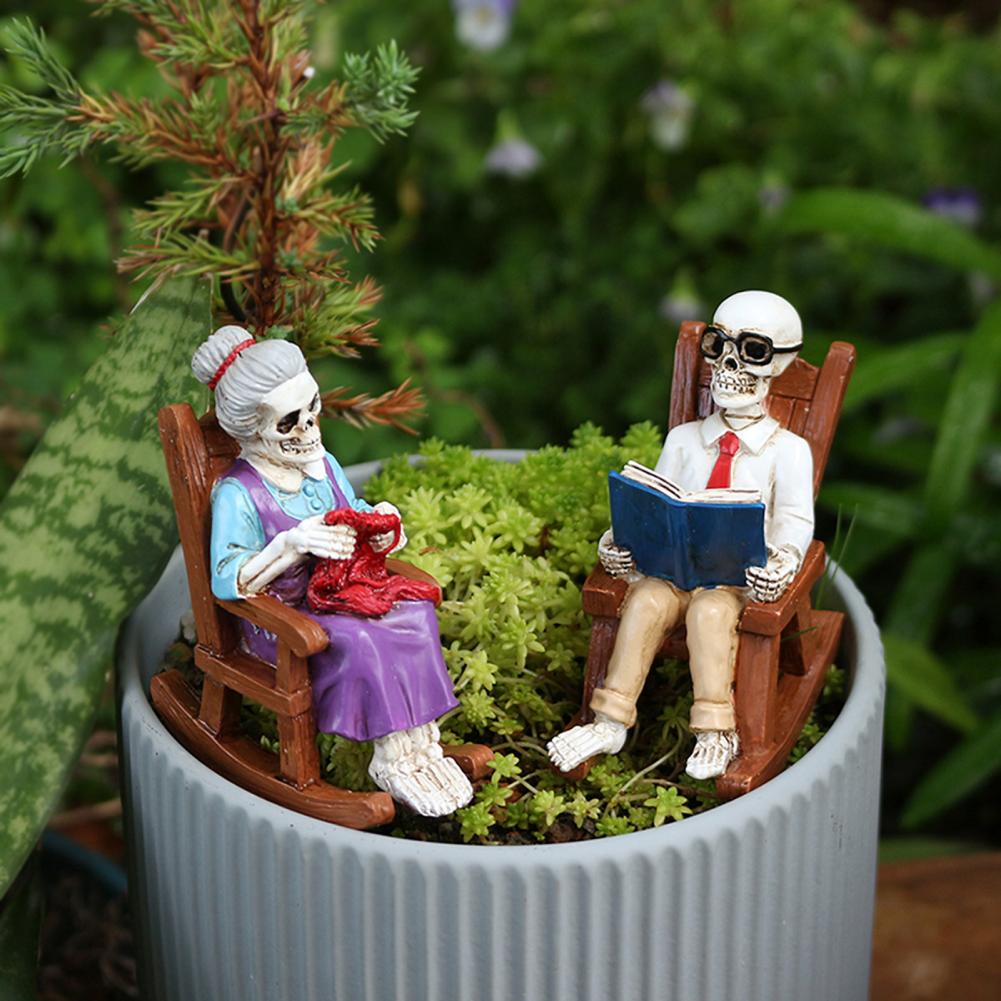 Reader Skull Figurines Skeleton Statue Halloween Decoration Halloween Skeleton Elderly Statues for Porch Courtyard Decor