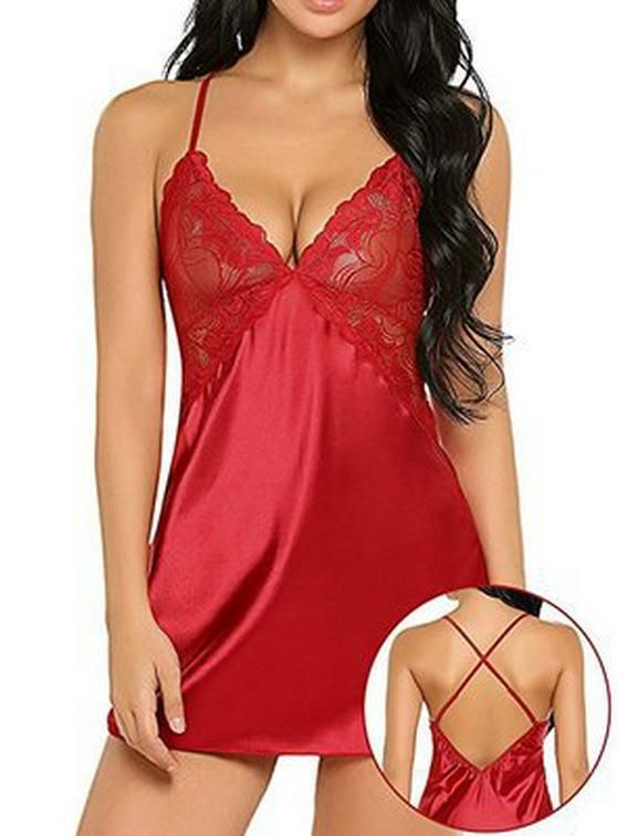Европейский и американский женский комплект сексуального нижнего белья и ночной сорочки из искусственного шелка - Милая женская домашняя одежда