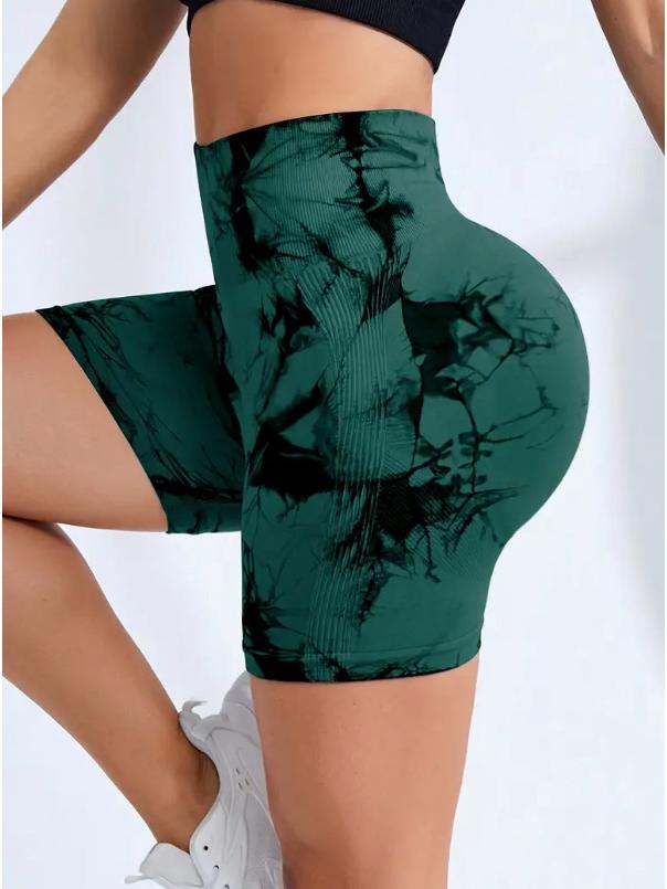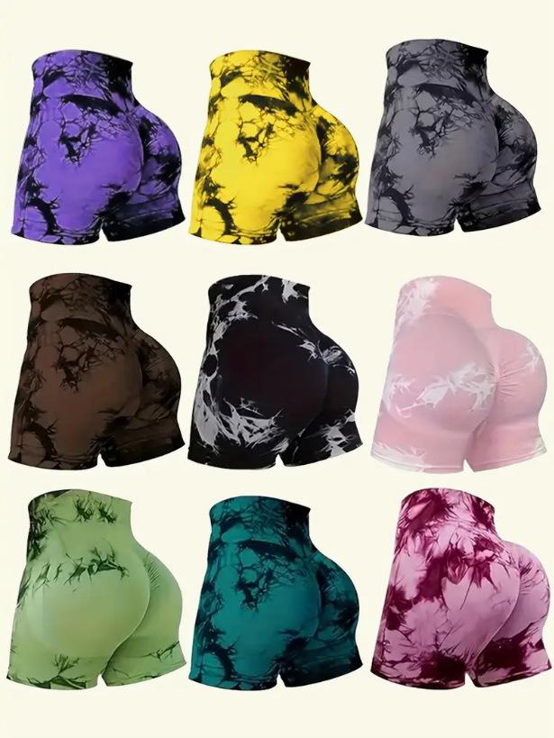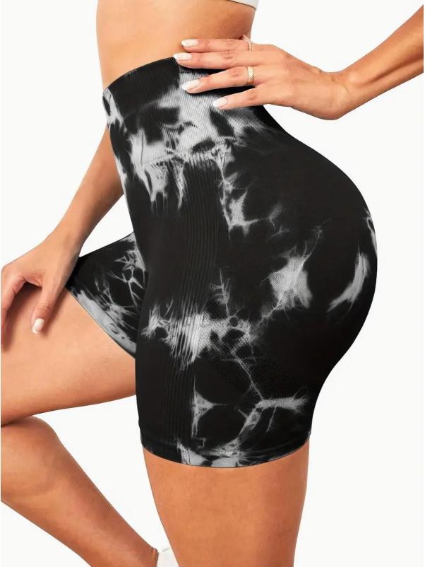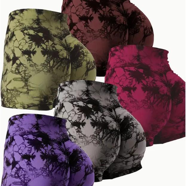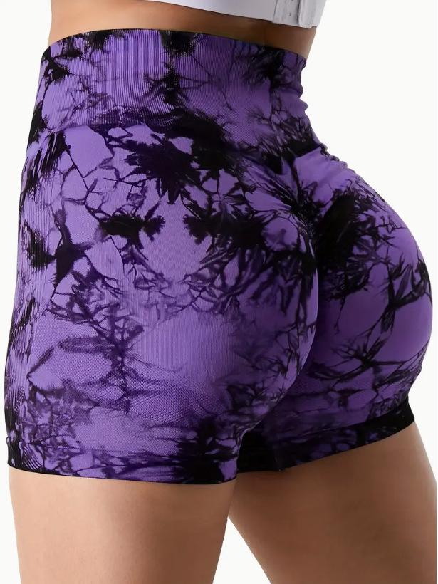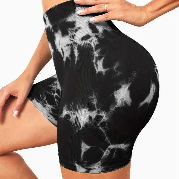 Европейские и американские шорты для йоги с высокой талией и эффектом тай-дай, быстросохнущие: Бесшовный, Эластичный, Подтягивающий бедра, Готовый к фитнесу