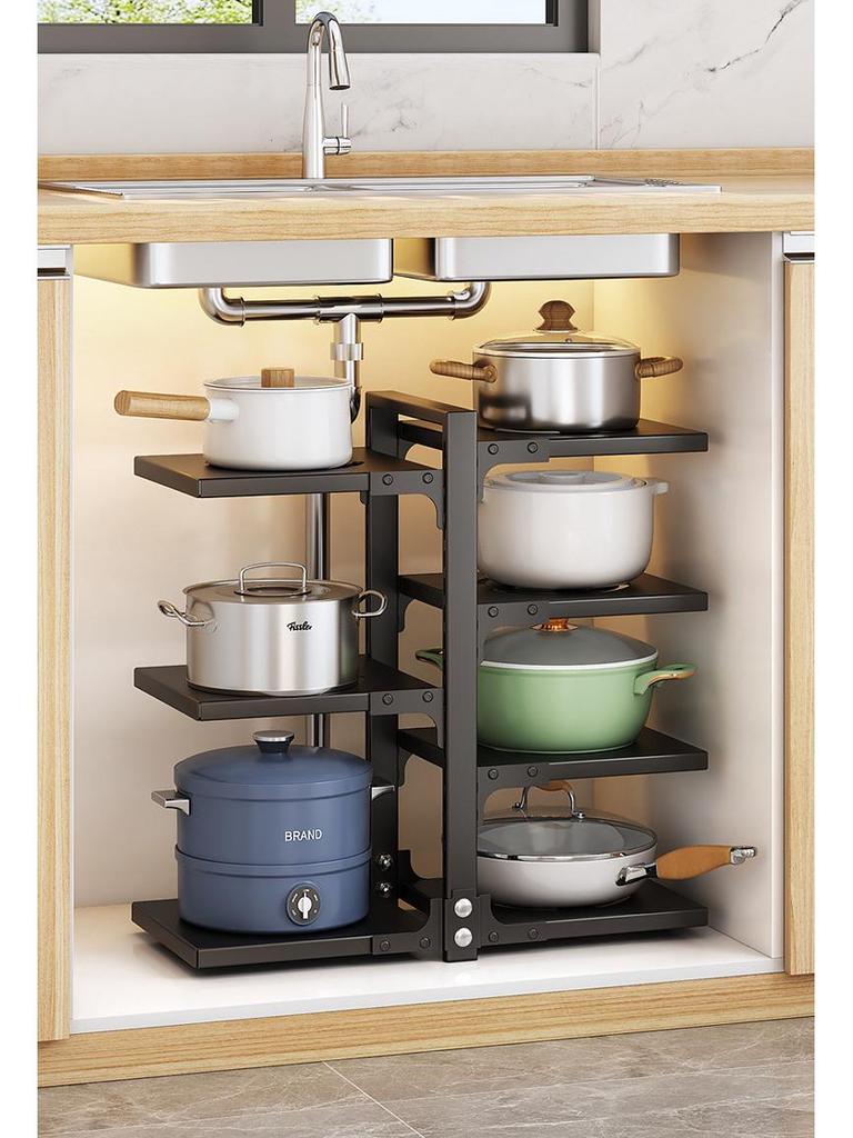 Кухонная многоярусная стойка для хранения кастрюль и посуды, органайзер для столешницы под раковину, двухсторонний дизайн