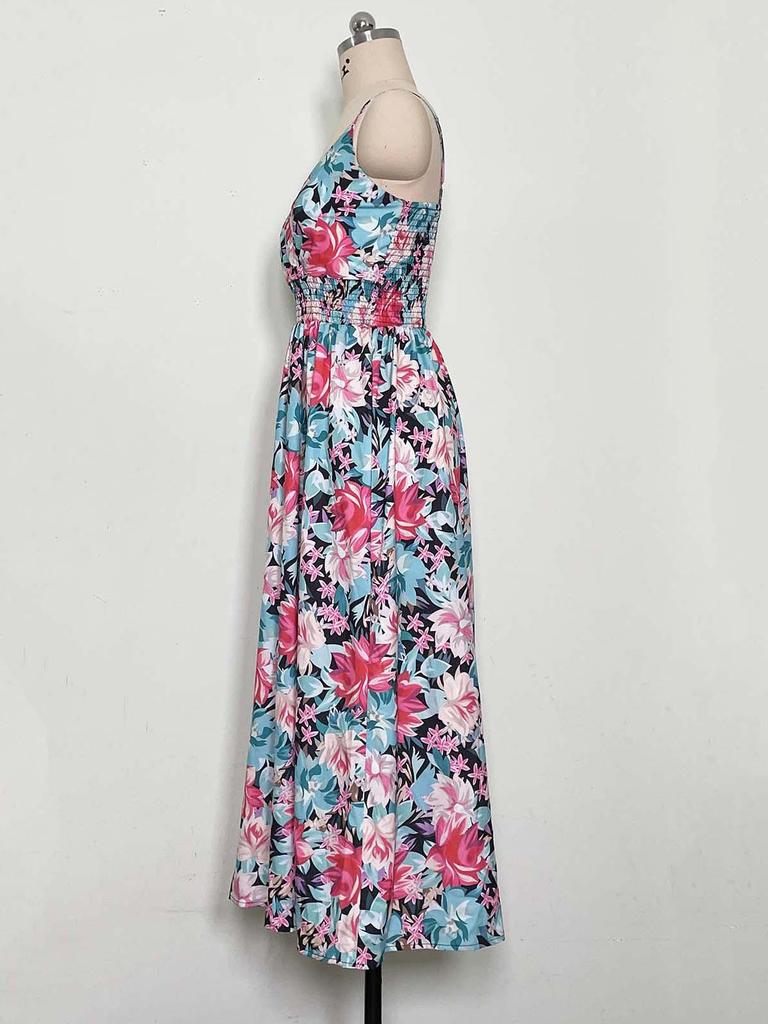 Бестселлер лета 2023 г.: Женское платье с V-образным вырезом, на тонких бретелях, с принтом - Европейский и американский стиль, приталенный дизайн