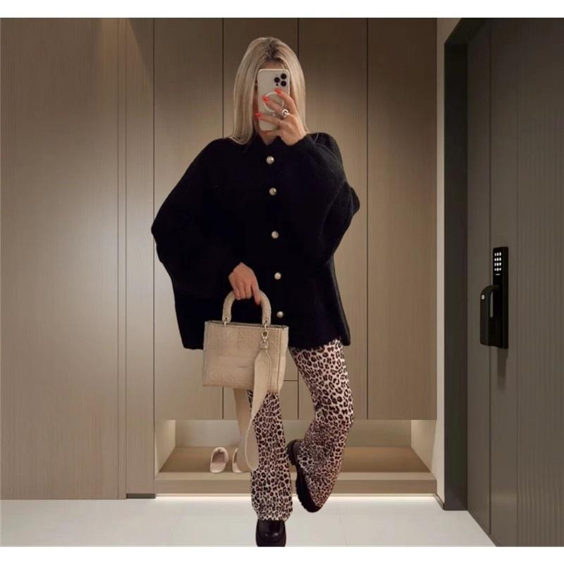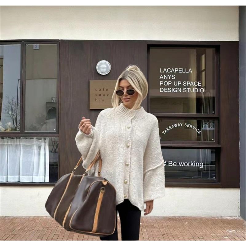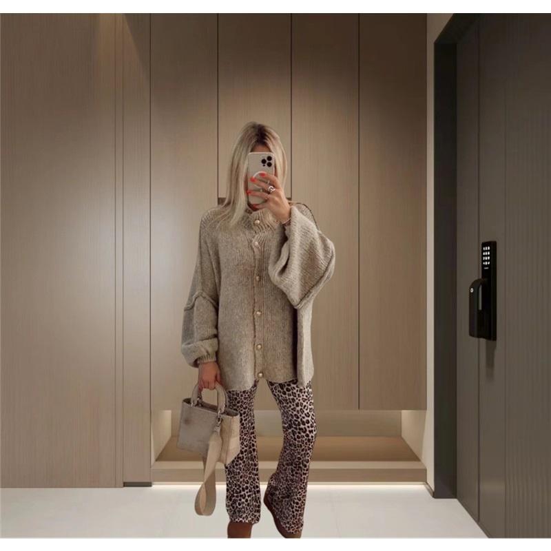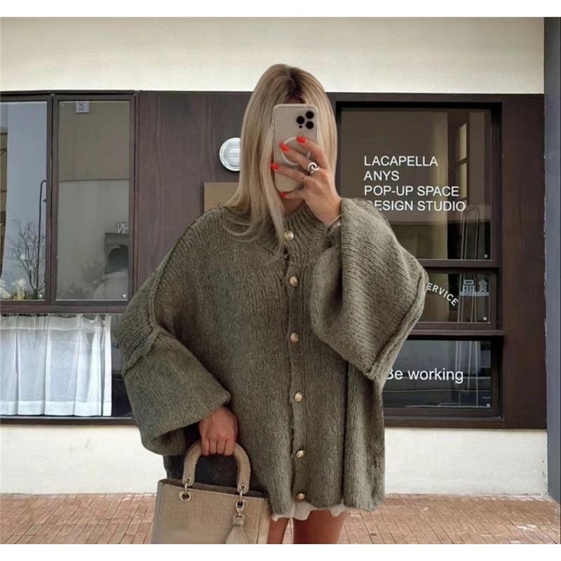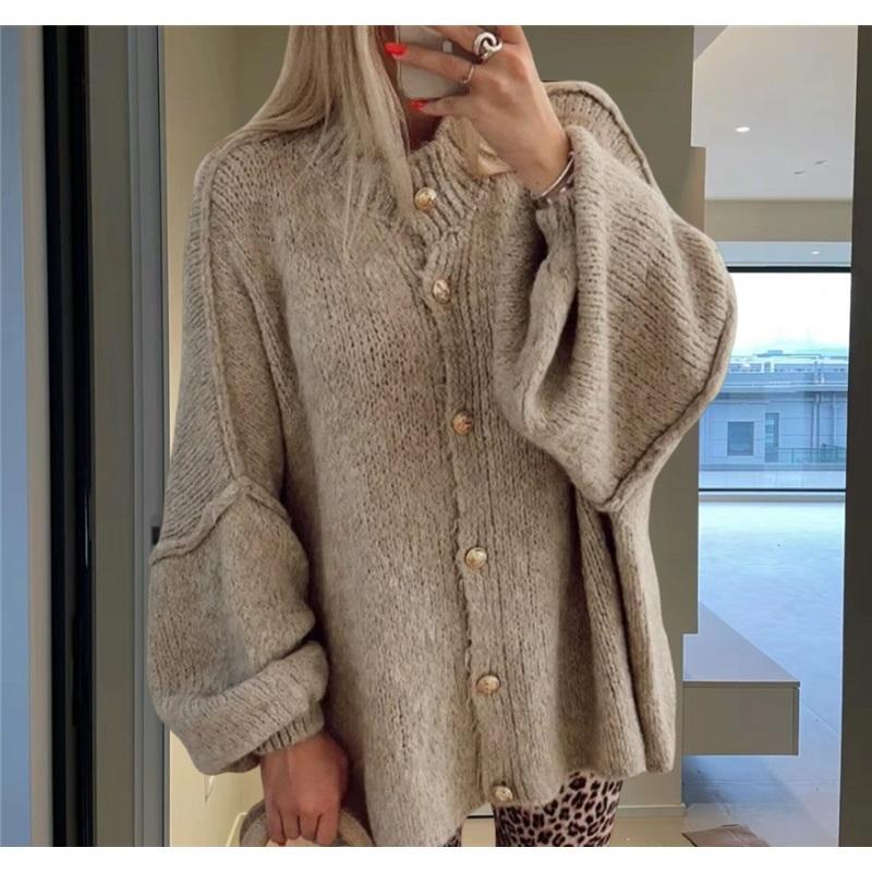 Однотонный повседневный кардиган на металлических пуговицах, кардиган-свитер с рукавами летучая мышь
