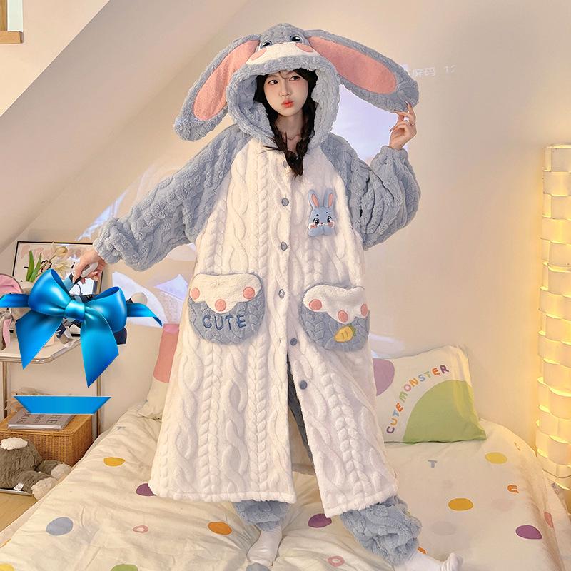 Осень и Зима Новая Милая Ночная Сорочка с Капюшоном Маленький Бобер Коралловый Флис Пижама Женский Зимний Женский Пижамный Комплект