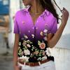 Лето 2025 Новая Мода Женская Блузка с Коротким Рукавом и V-образным Вырезом на Пуговицах с Цветочным Принтом