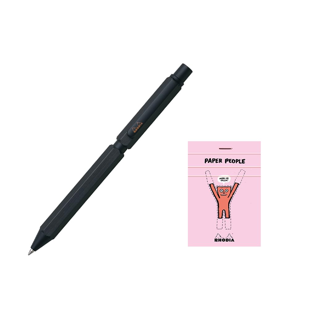 Rhodia Pen Ballpoint Pen with Two Colors and and Mechanical Aluminum Body with Hairline Rotary Includes RHODIA 11 Block Rhodia Multi-Function "Script