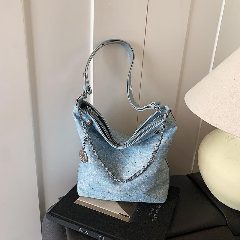 Джинсовая сумка большой вместимости Новая женская сумка-ведро Сумка через плечо для поездок на работу Модная сумка с цепочкой