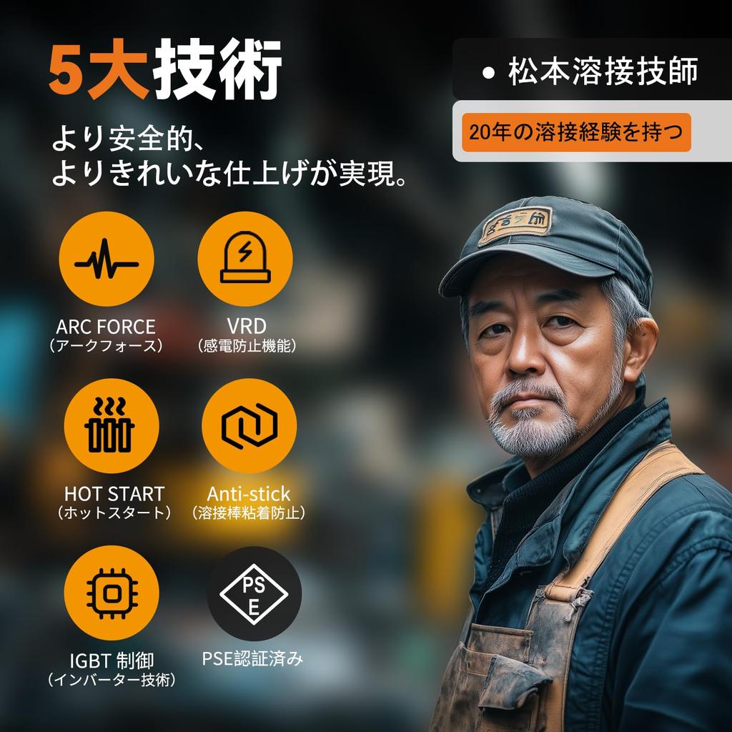 [Под руководством эксперта по сварке г-на. Мацумото, в комплекте с аксессуарами и надежной гарантией] Мини-сварочный аппарат MJUM был разработан компанией Rakuko Co., Ltd.. в сотрудничестве с Иоганном Мюллером, председателем Международного комитета по сварочным технологиям, и ветераном-экспертом по сварке г-ном. Мацумото, с более чем 20-летним опытом сварки. Мы гарантируем, что каждая деталь соответствует профессиональным стандартам. Продукт поставляется с полным набором аксессуаров. В комплект входит сам сварочный аппарат, стандартная MMA горелка (с держателем), зажим заземления, 24 сварочных электрода, защитная маска и сварочные перчатки, а также 20-страничная инструкция, написанная командой профессиональных сварщиков. (Горелка LIFT TIG в комплект не входит.) MJUM предлагает надежное послепродажное обслуживание. Поставляется с 2-летней гарантией производителя (с даты покупки). Если вам нужна помощь с отсутствующими аксессуарами или проблемами в работе, мы предлагаем клиентскую поддержку на японском языке, мгновенный ответ по электронной почте и техническую поддержку от наших экспертных сотрудников.