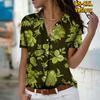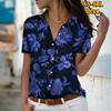 Лето 2025 Новая Мода Женская Блузка с Коротким Рукавом и V-образным Вырезом на Пуговицах с Цветочным Принтом — купить товар онлайн с бесплатной доставкой по всему миру!