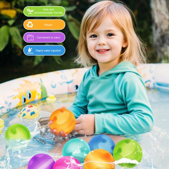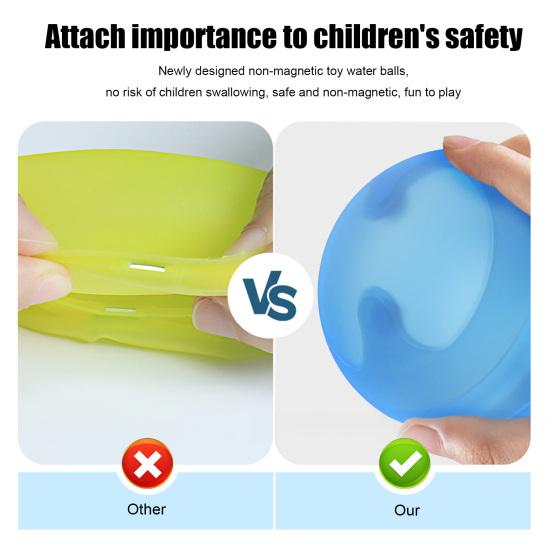 Мягкая силиконовая конструкция: Изготовленный из высококачественного силикона, этот многоразовый водяной шар обеспечивает безопасность детей во время игры.. Его ударопрочный материал гарантирует долговечность для бесконечного веселья в водных баталиях.