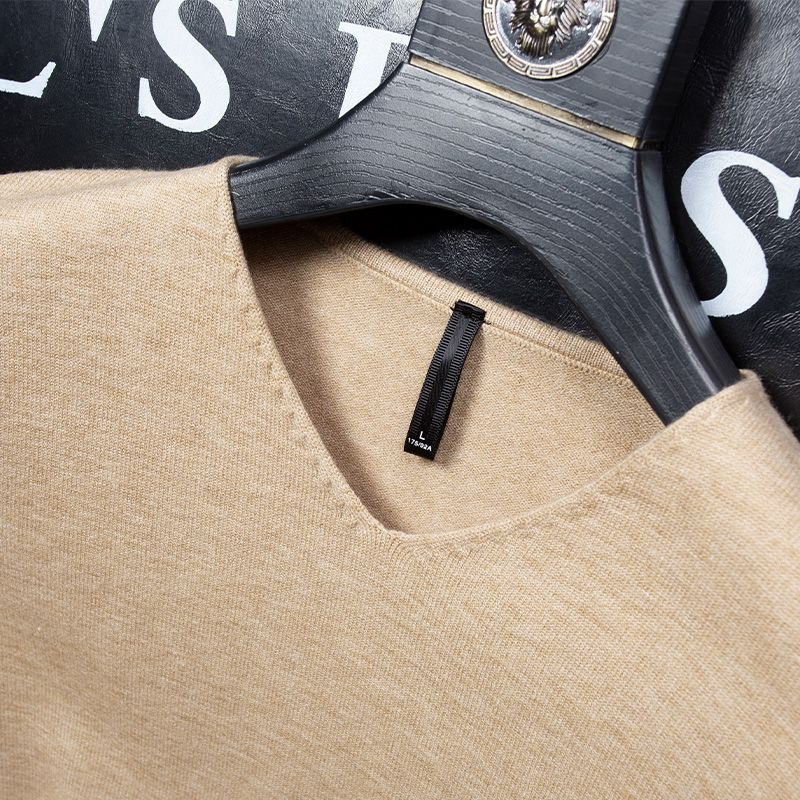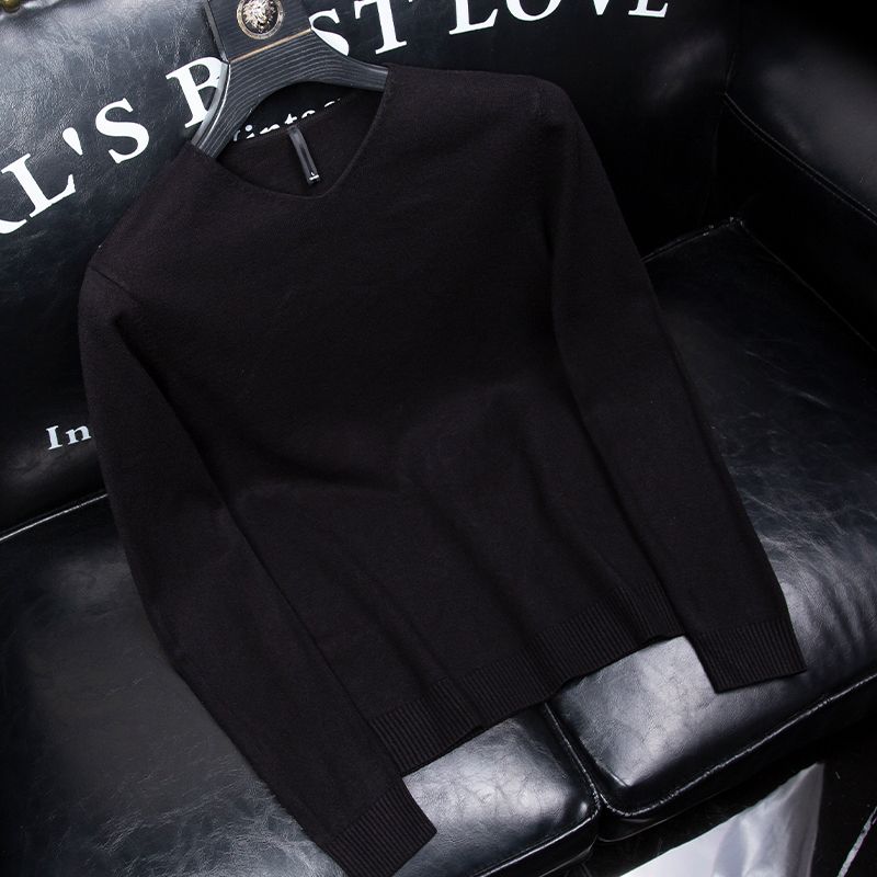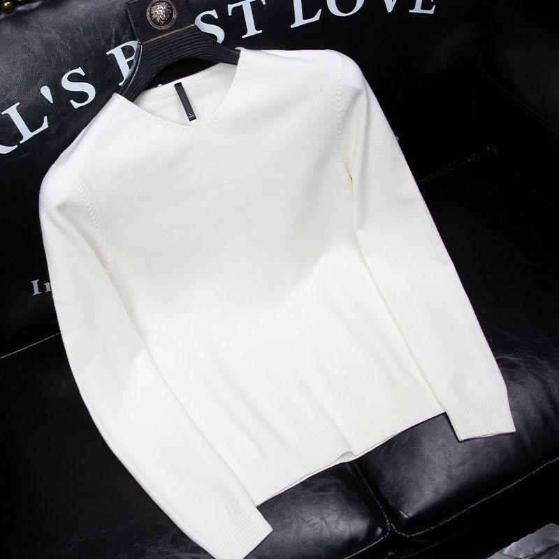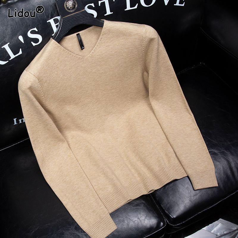 Мужской осенне-зимний пуловер с V-образным вырезом, вязаный свитер, однотонный, модный, для работы, универсальный, с длинным рукавом