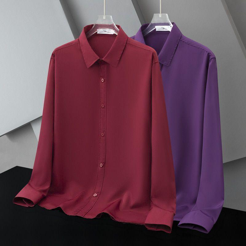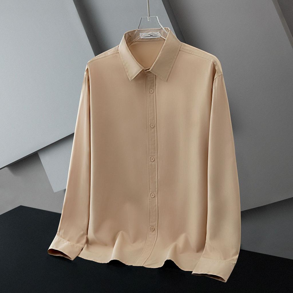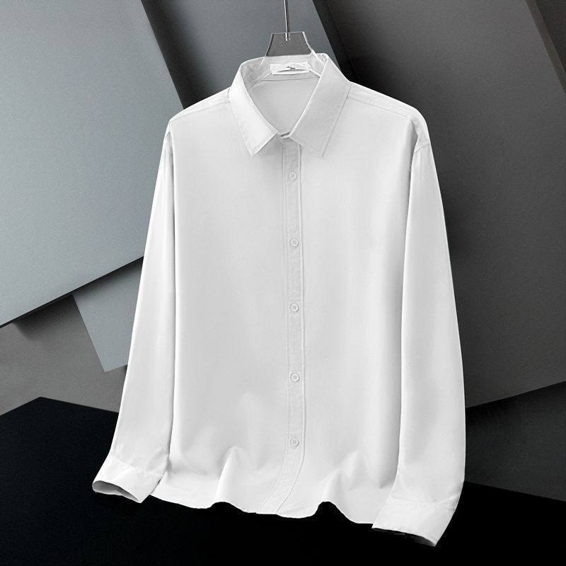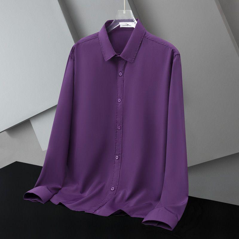 Весенне-осенняя деловая и повседневная минималистичная рубашка с отложным воротником из шелковистой ткани, не требующая глажки, дышащая, эластичная, для мужчин