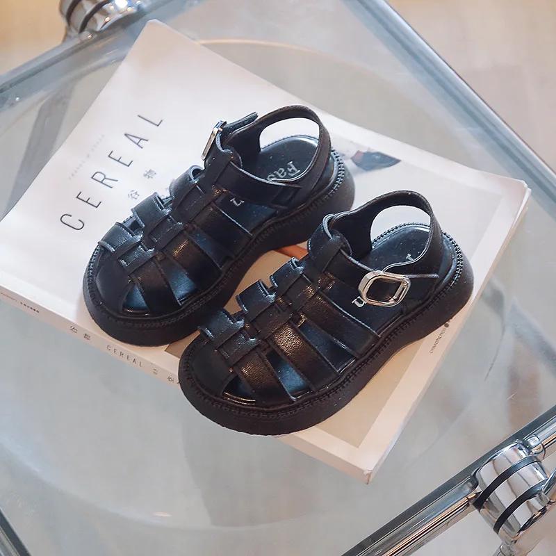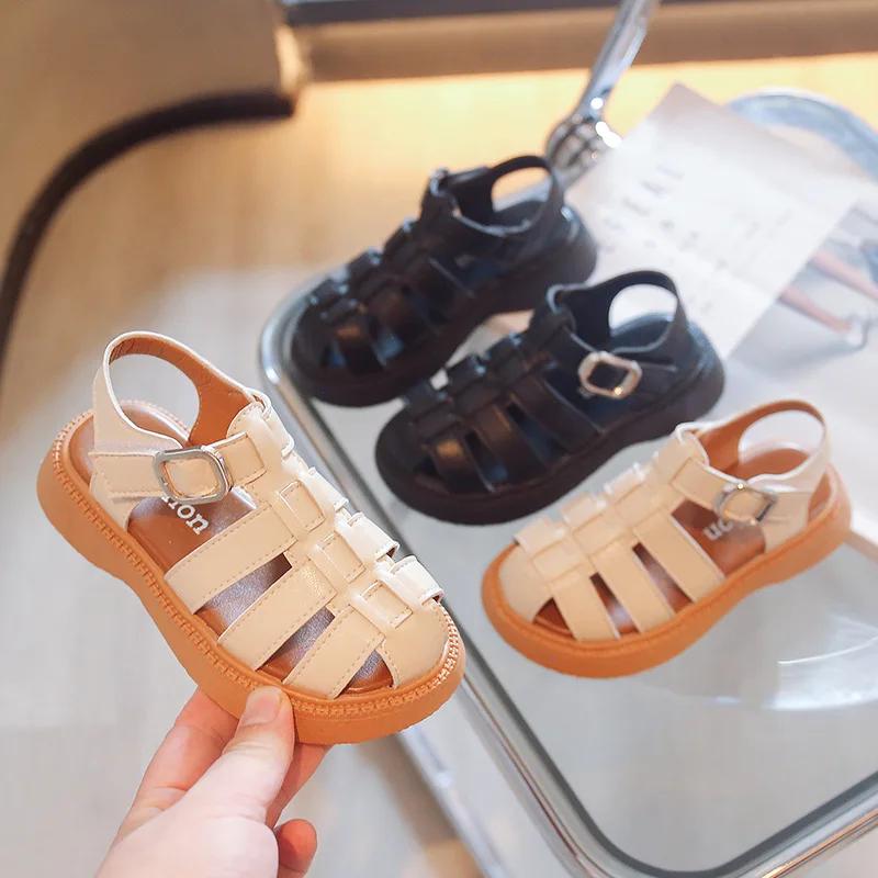 2024 Summer New Children's Baotou Sandals Girls Hollowed-out Soft Soles Large Children Girls Roman Sandals