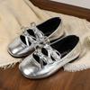 Принцесса балетки для девочек золото серебро универсальные детские кожаные туфли модные милые детские повседневные туфли на плоской подошве новые