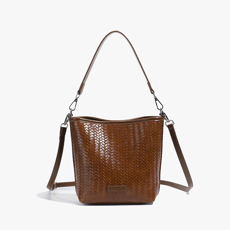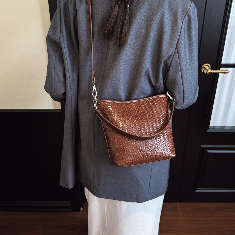 Niche woven pattern bag women's new simple bucket bag casual commuter shoulder messenger bag