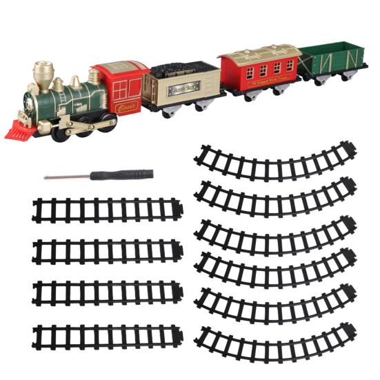 Изготовленный из высококачественных материалов, этот набор включает в себя классический локомотив, пассажирский вагон, угольный вагон, грузовой вагон и различные пути.. Этот набор для игры в железную дорогу подойдет мальчикам в возрасте от 2 до 7 лет и сочетает в себе качество и доступную цену.