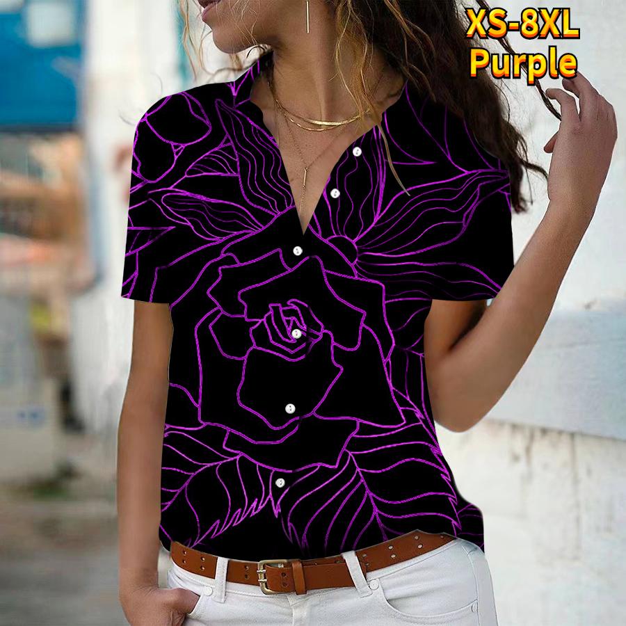 Лето 2025 Новая Мода Женская Блузка с Коротким Рукавом и V-образным Вырезом на Пуговицах с Цветочным Принтом