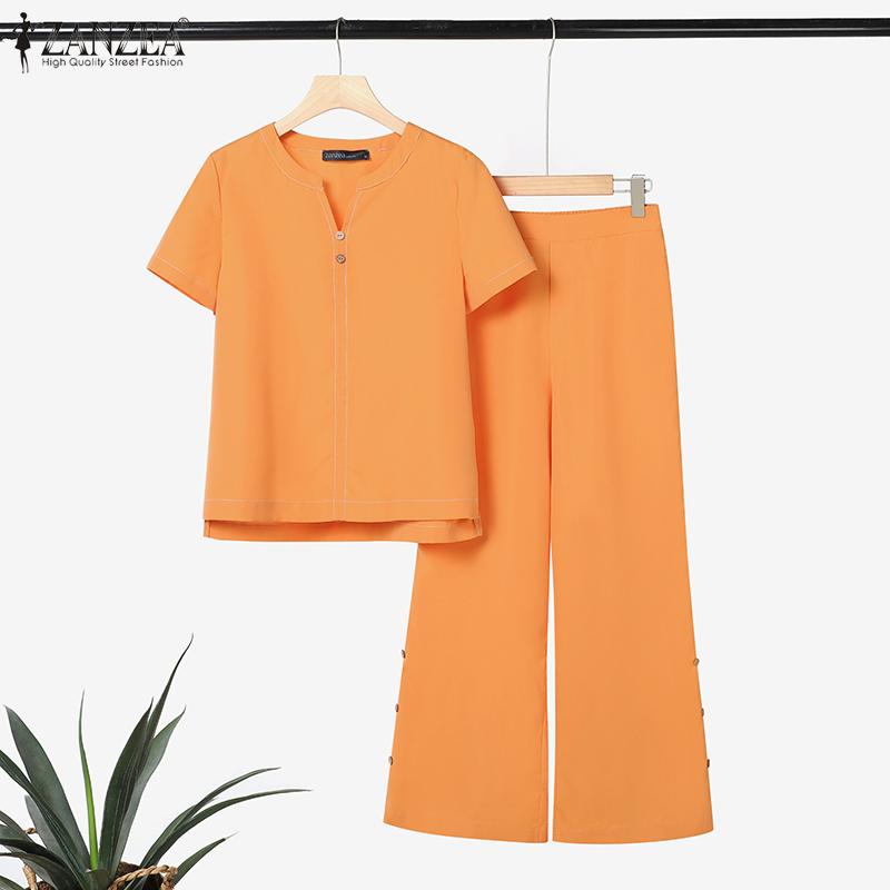 ZANZEA Женский летний комплект из двух частей: блузка с коротким рукавом и брюки