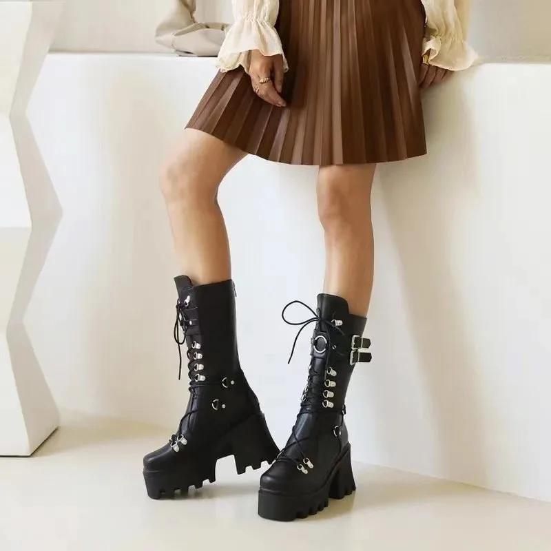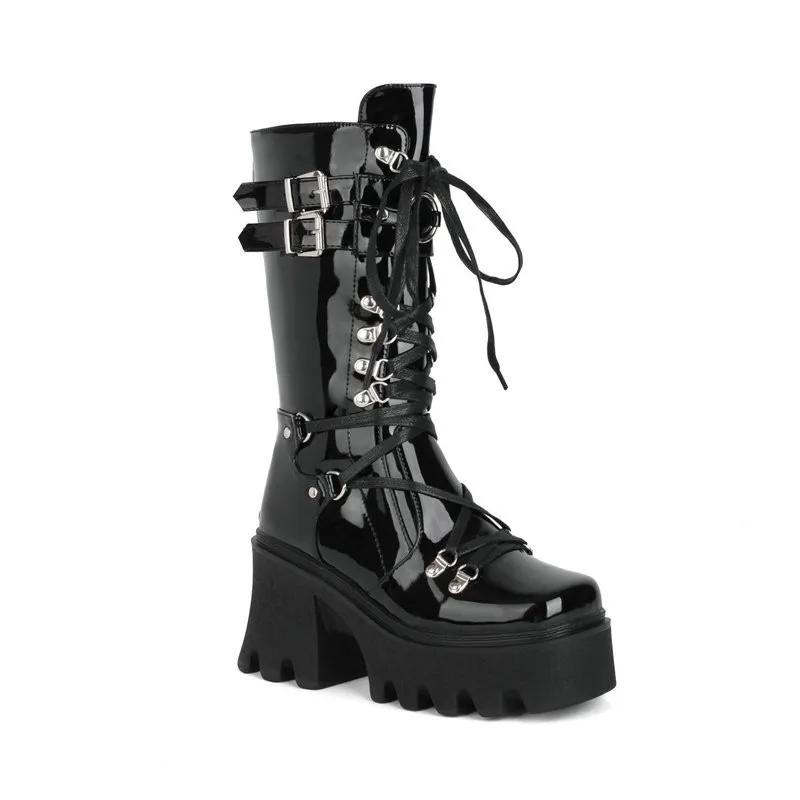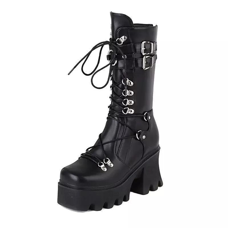 Женские высокие сапоги косплей сапоги до середины икры сапоги на высокой платформе и танкетке 2025 новый дизайнер готическая обувь для женщин botas zapatos mujer
