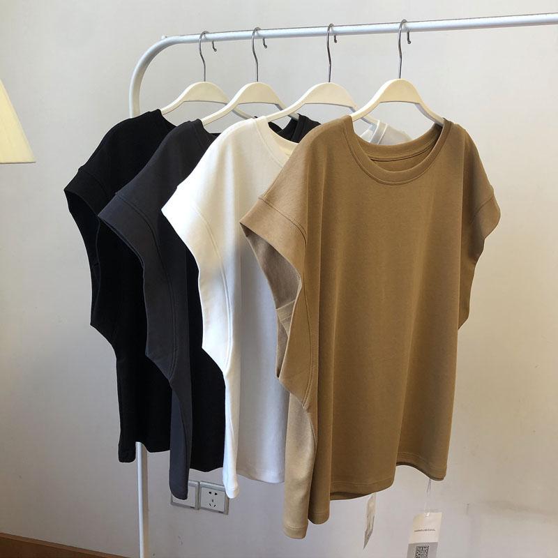 Женский хлопковый танктоп однотонного цвета с рукавами-буфами - Свободный, без рукавов, дизайн против просвечивания, повседневная летняя одежда