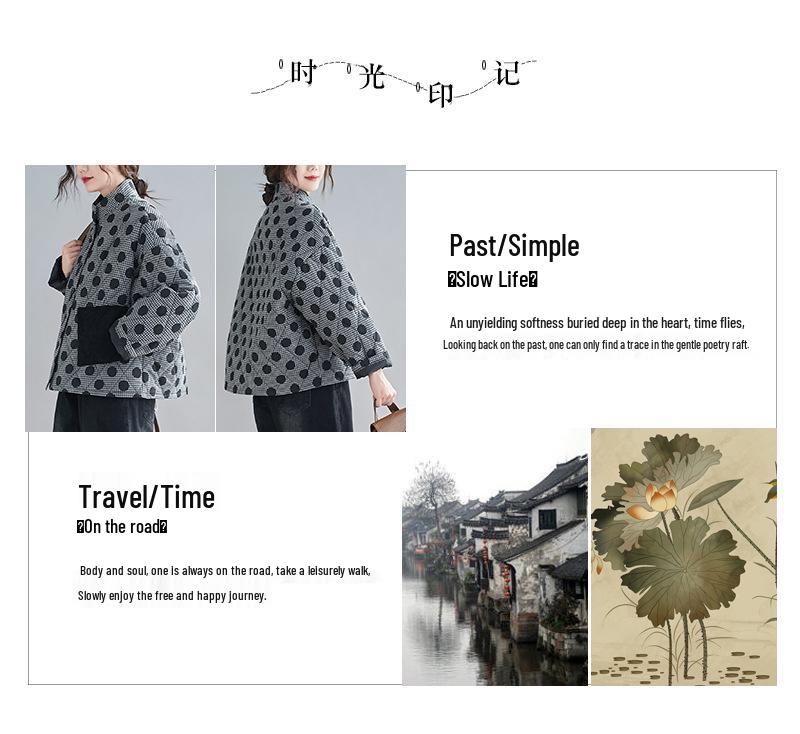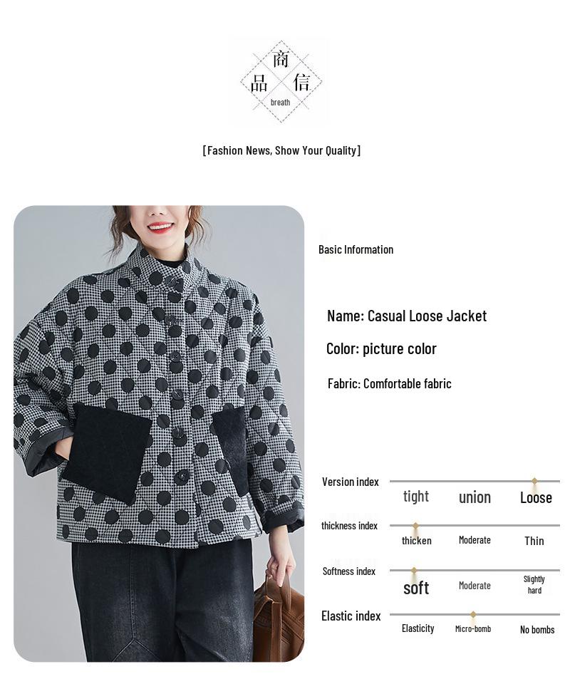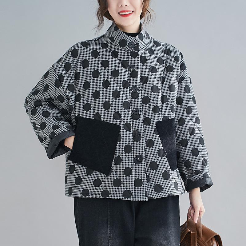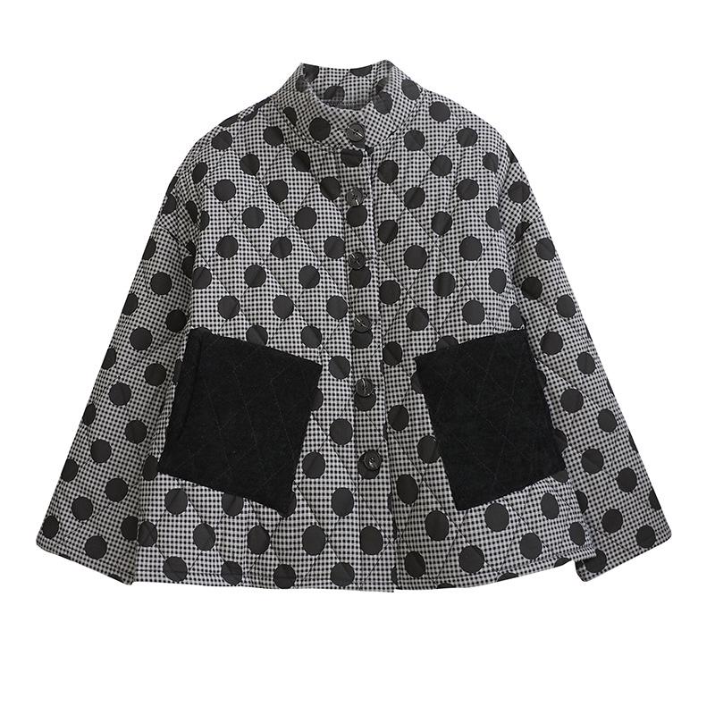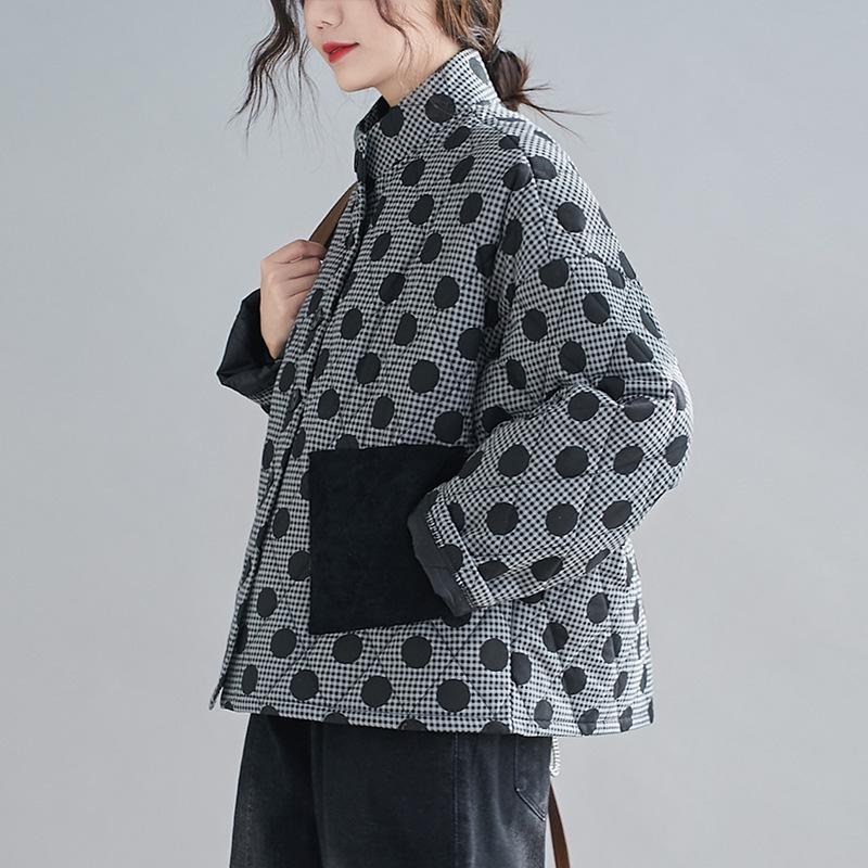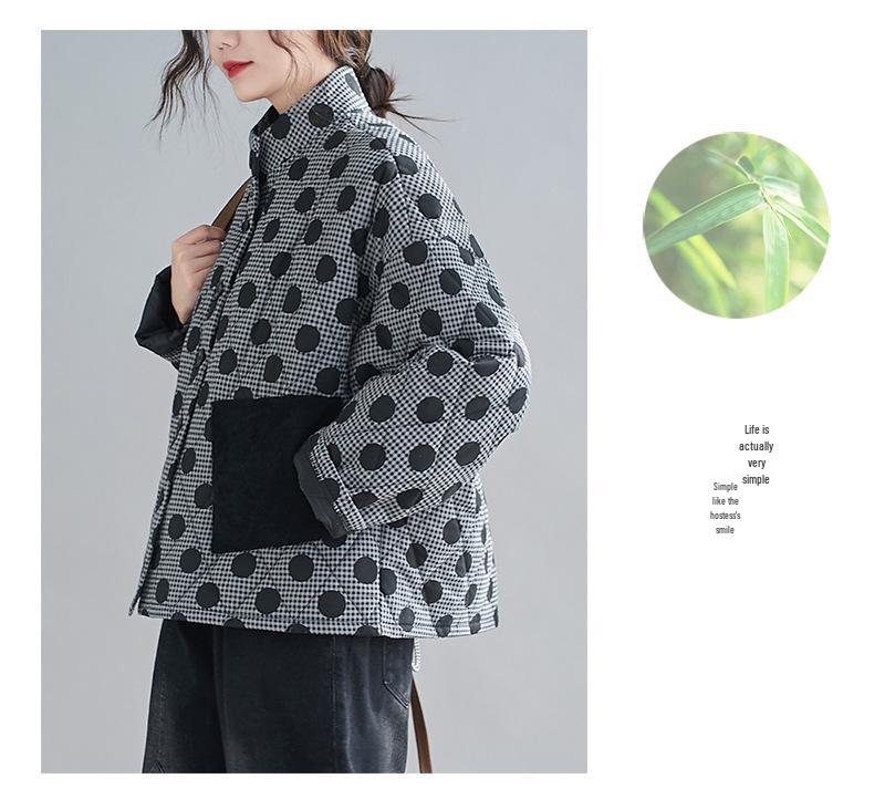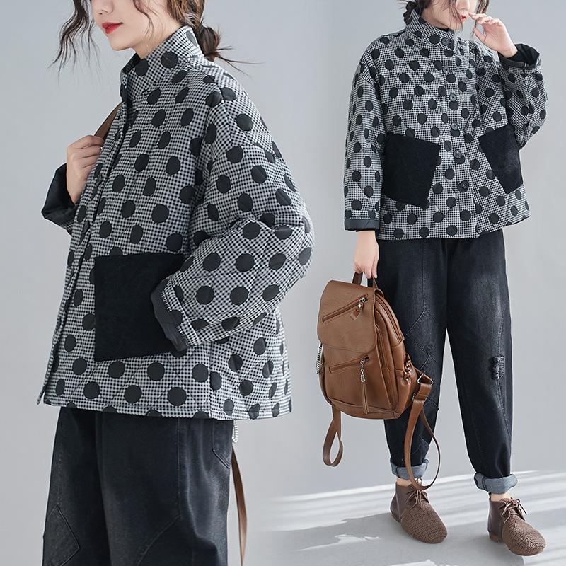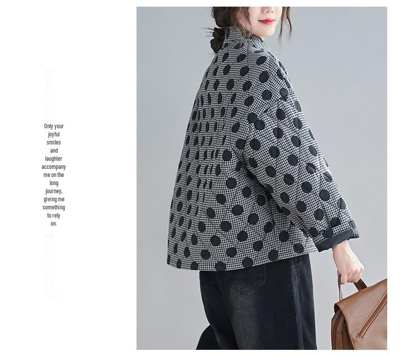 Женская стеганая хлопковая куртка ретро аргайл большого размера 2024 с принтом в горошек