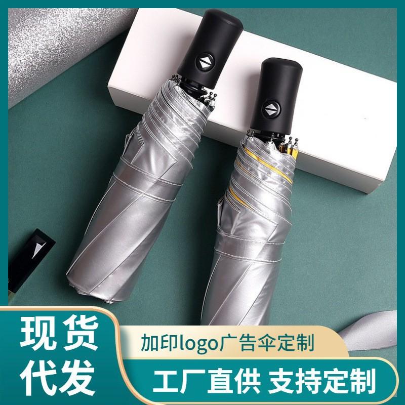 Титановый серебристый клей трехсекционный автоматический зонт от солнца зонт маленький свежий погода и дождь двойного назначения складной зонт зонт