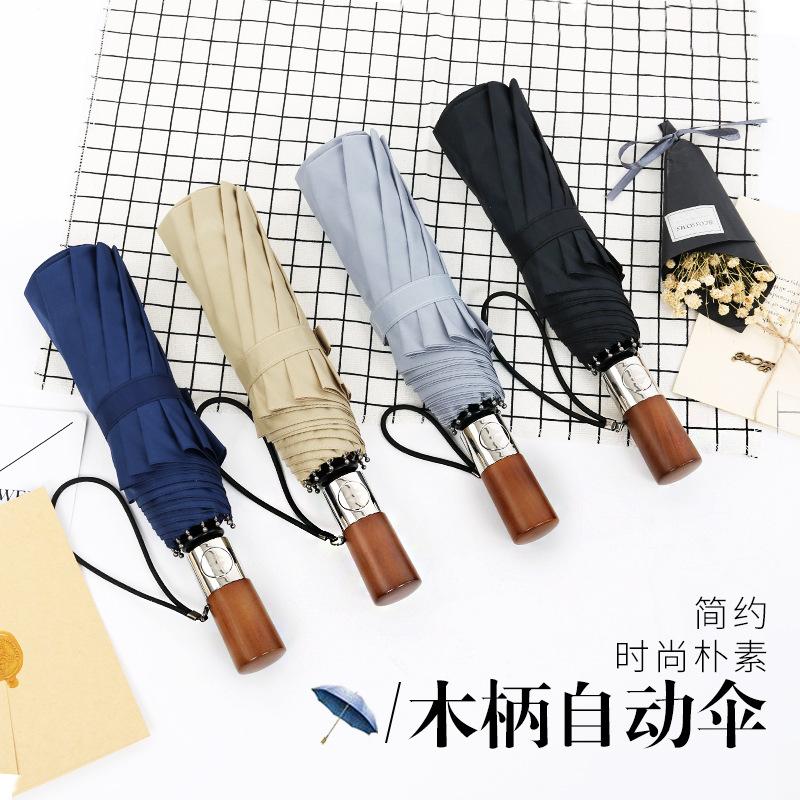 Десятиспицевой ветрозащитный зонт тройного сложения автоматический зонт от дождя складной зонт мужской зонт из массива дерева зонт зонт
