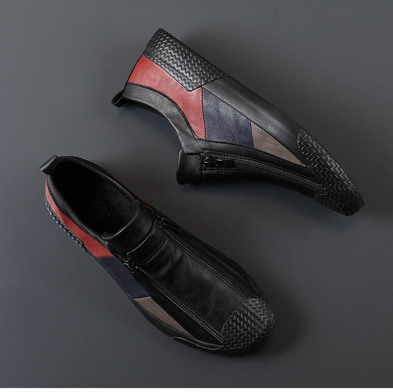 Мужские кожаные туфли на молнии сбоку, дышащие, плоские, повседневные, корейские универсальные туфли для скейтборда, модные кроссовки Hombre Zapatos Tenis 46