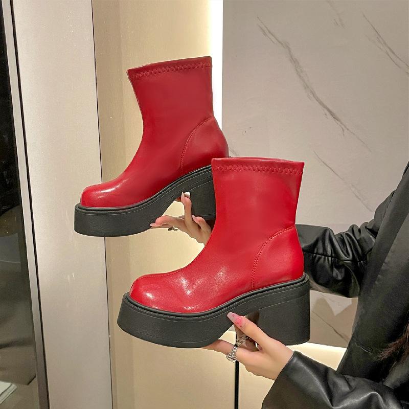 Женские ботинки 2024 Зимние утепленные хлопковые ботинки Водонепроницаемая платформа Толстый высокий каблук Застежка-молния сзади Короткие ботинки Универсальная обувь Женщины — купить товар онлайн с бесплатной доставкой по всему миру!
