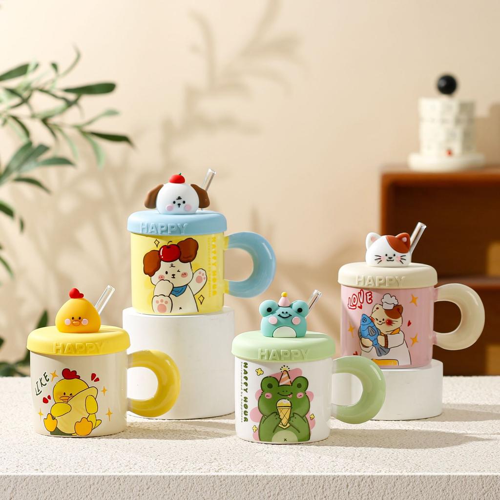 Милая кружка-утка Высоко выглядящая керамическая чашка для воды с крышкой Чтобы отправить девушкам Парная чашка Чашка-кальмар Подарок на день рождения