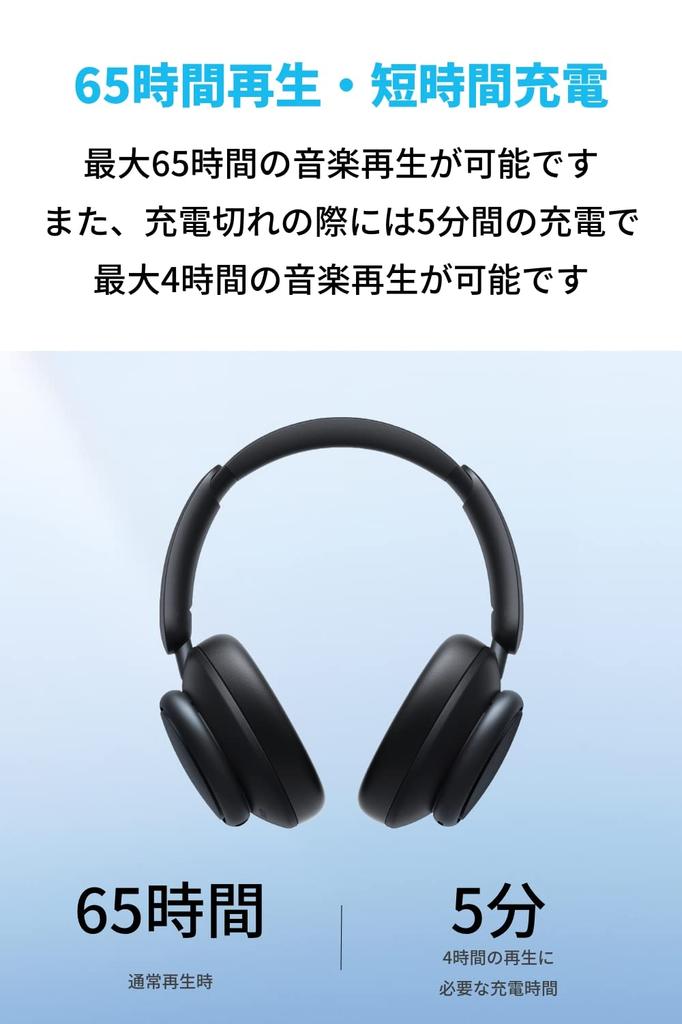 До 65 часов воспроизведения с быстрой зарядкой: Возможно до 65 часов воспроизведения музыки, и 5 минут зарядки обеспечат примерно 4 часа воспроизведения музыки. (*Время воспроизведения — это время, когда воспроизводится музыка, и оно будет варьироваться в зависимости от громкости и условий использования.).