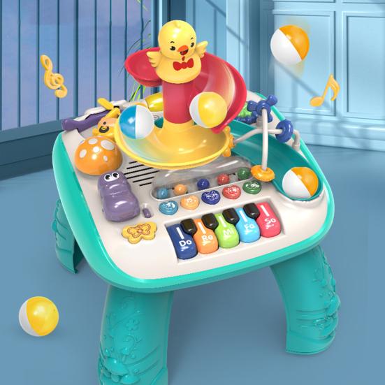 МНОГОФУНКЦИОНАЛЬНЫЙ ДЕТСКИЙ СТОЛИК ДЛЯ АКТИВНОСТИ: Этот детский столик создан для того, чтобы стимулировать и развлекать вашего малыша.. В набор входят забавная горка с мячом, детское пианино с 5 клавишами, имитация животных, клавиши переключения передач, бегемотик с открытой пастью, весельная лодка и катящиеся бусины.. Свет и звуки добавляют веселья и интерактивности во время игр ребенка.. Помогает развивать моторику и творческие способности.