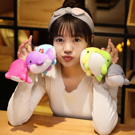 10cm Whale Plush Pendant PP Cotton Filling Cute Cartoon Animal Doll Plush Toy Ornament Colorful Stuffed Sea Animal Plush Doll Keychain Kids Girl Gift