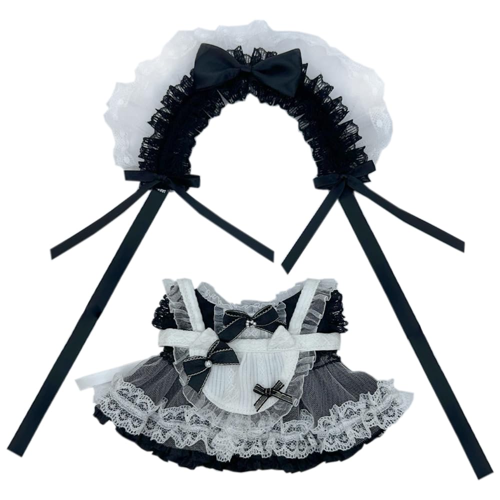 niannyyhouse Lace Head 20cm Plush Maid Cotton Doll Doll Accessories Dress, Dress, Apron, 10cm, 15cm, Doll, Suit, Clothes, Dress-Up, (Black-20cm)