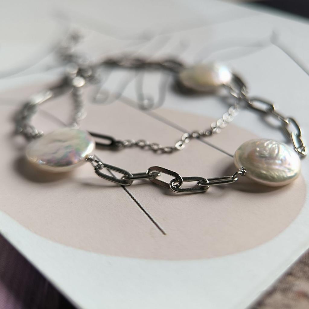 серебряный браслет с натуральным жемчугом барочным, вес изделия 5,01 гр