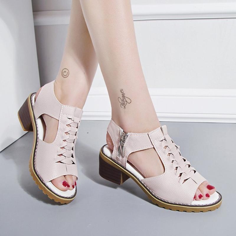 2025 Новые Летние Женские Сандалии Толстый Каблук Боковая Молния Римские Сандалии Удобные Износостойкие Женские Туфли на Высоком Каблуке Zapatos De Mujer