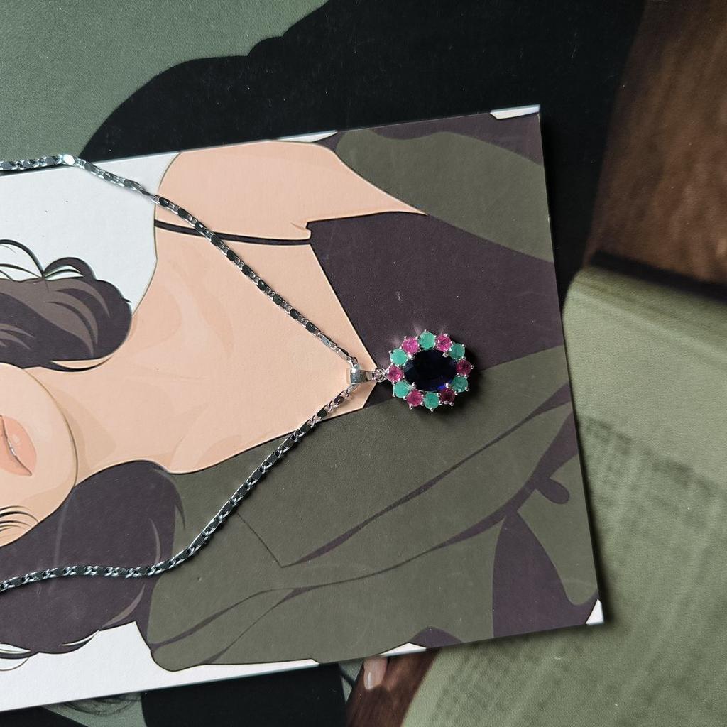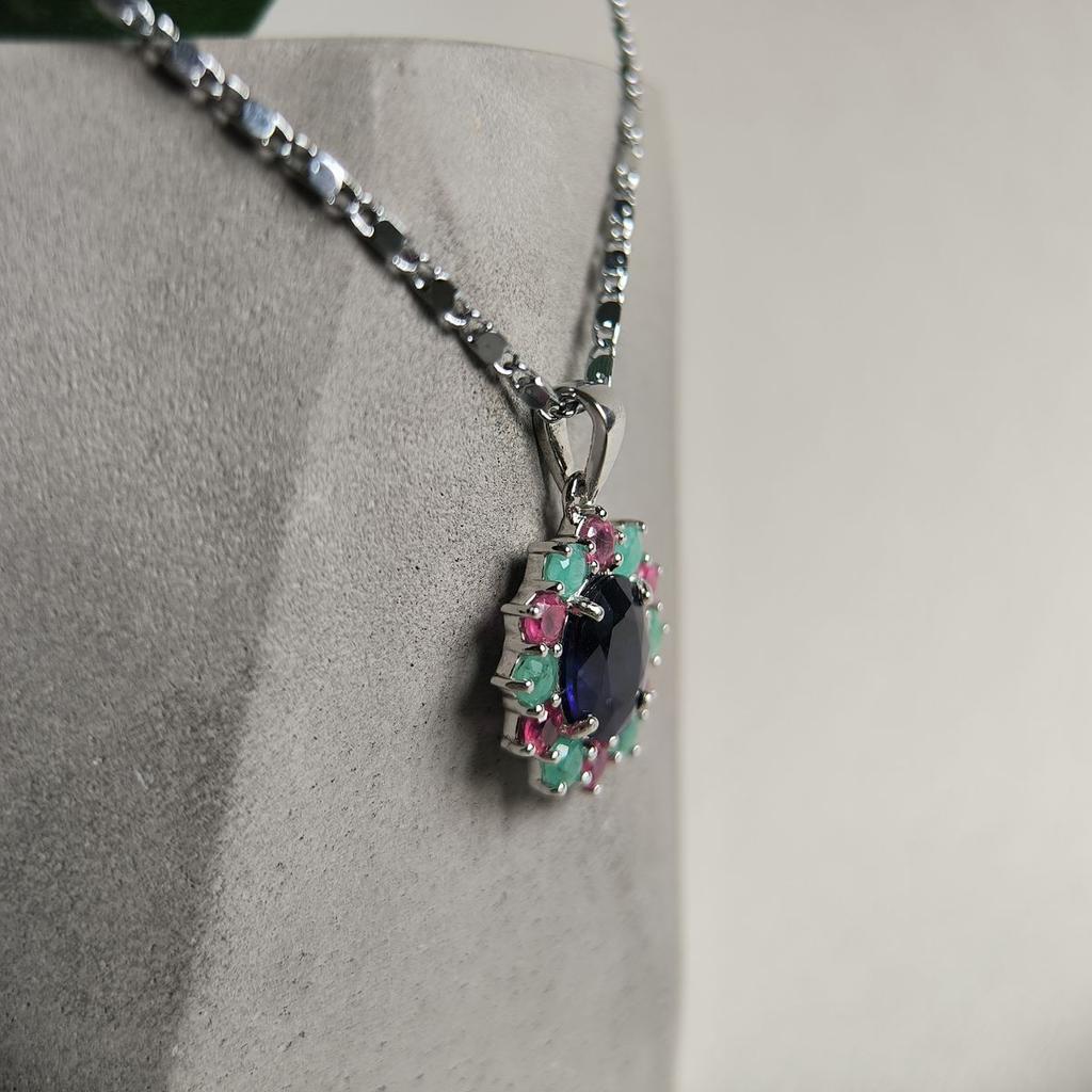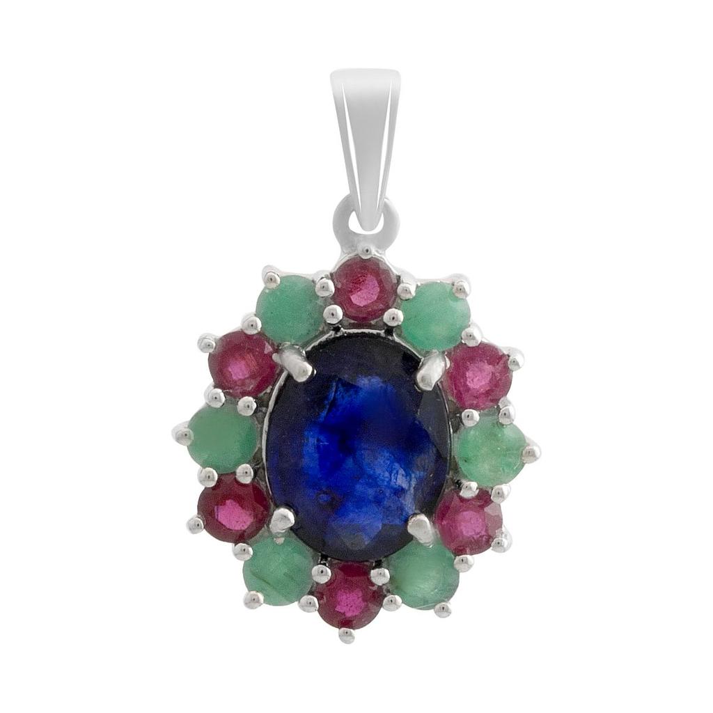 серебряная подвеска с сапфиром 4.575ct, рубином, изумрудом
