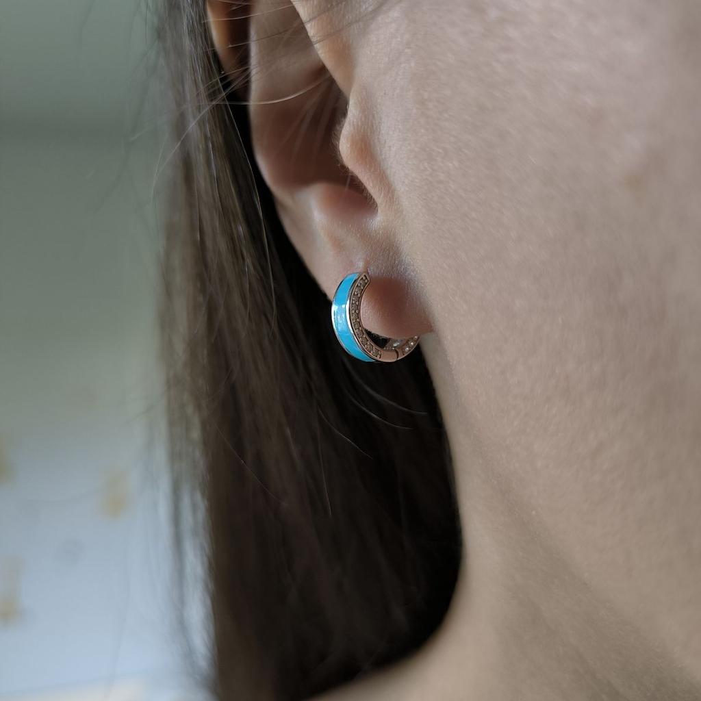 Серебряные серьги с фианитами, емаллю (60002195)