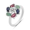 серебряное кольцо с натуральным сапфиром, рубином, изумрудом, вес изделия 3,17 гр