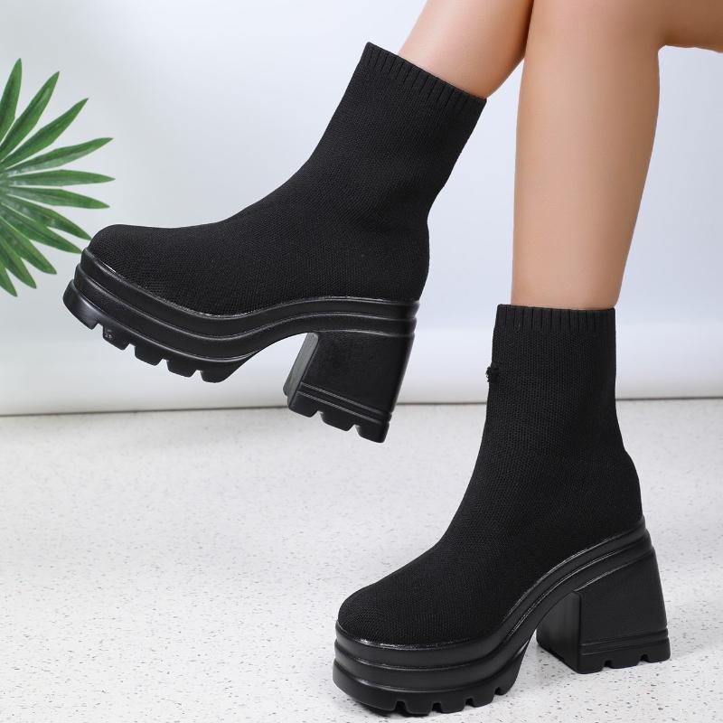Женские ботильоны Модные туфли на платформе Блочные каблуки Женские сапоги Однотонные женские туфли-лодочки Сексуальные кожаные сапоги Ботинки с квадратным носком