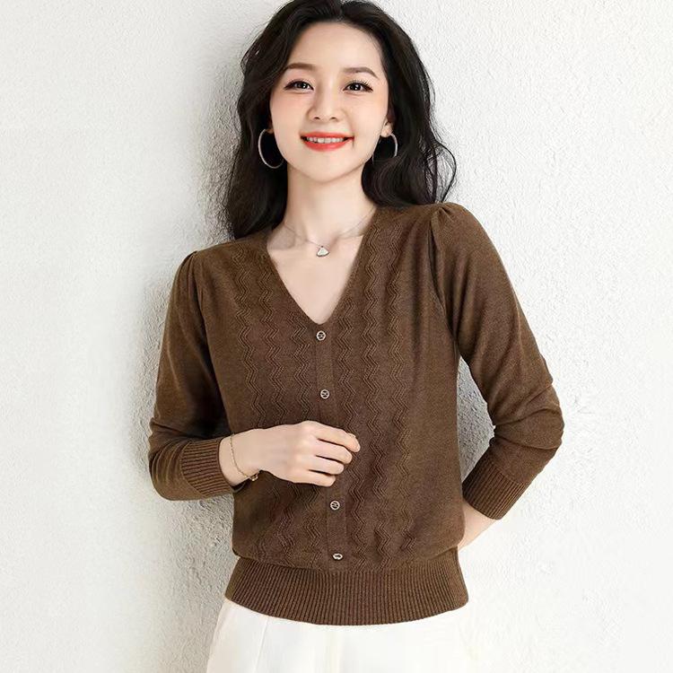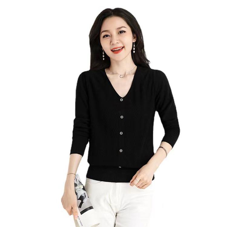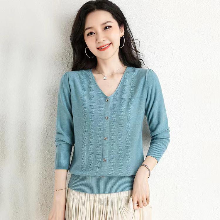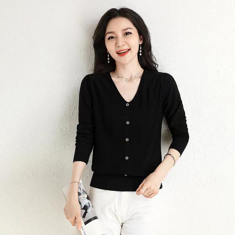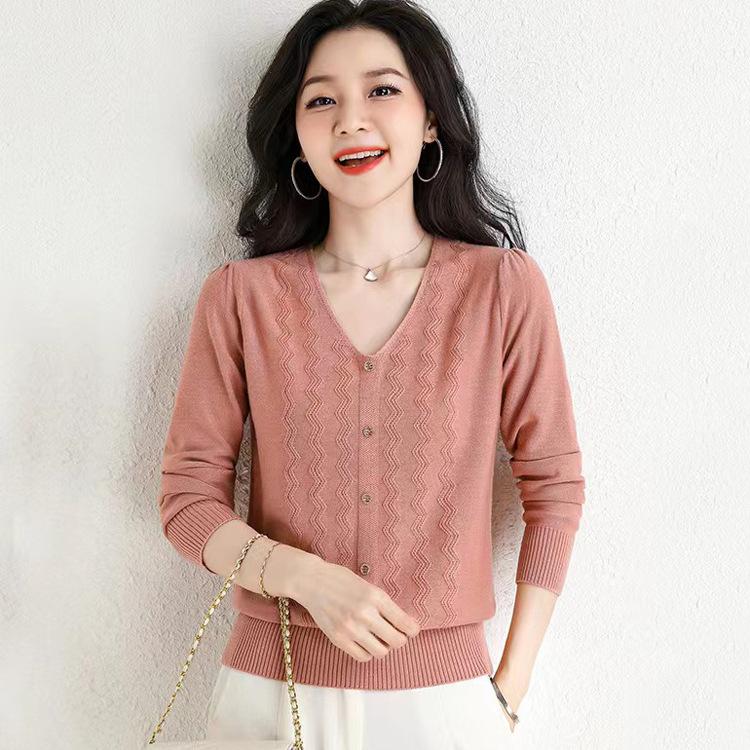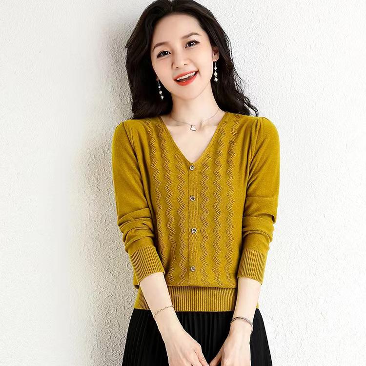 Женский пуловер с V-образным вырезом, с длинными рукавами, вязаный свитер-пуловер с длинными рукавами