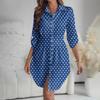 Женское платье свободного кроя с V-образным вырезом и длинными рукавами, с принтом, платье-рубашка для работы