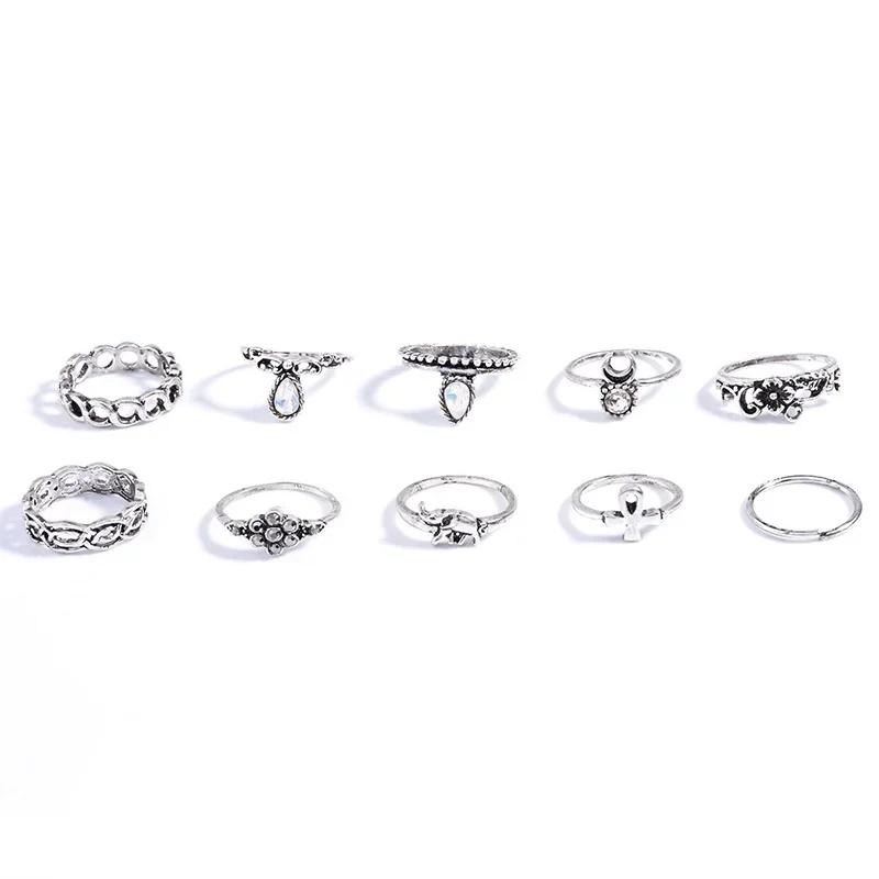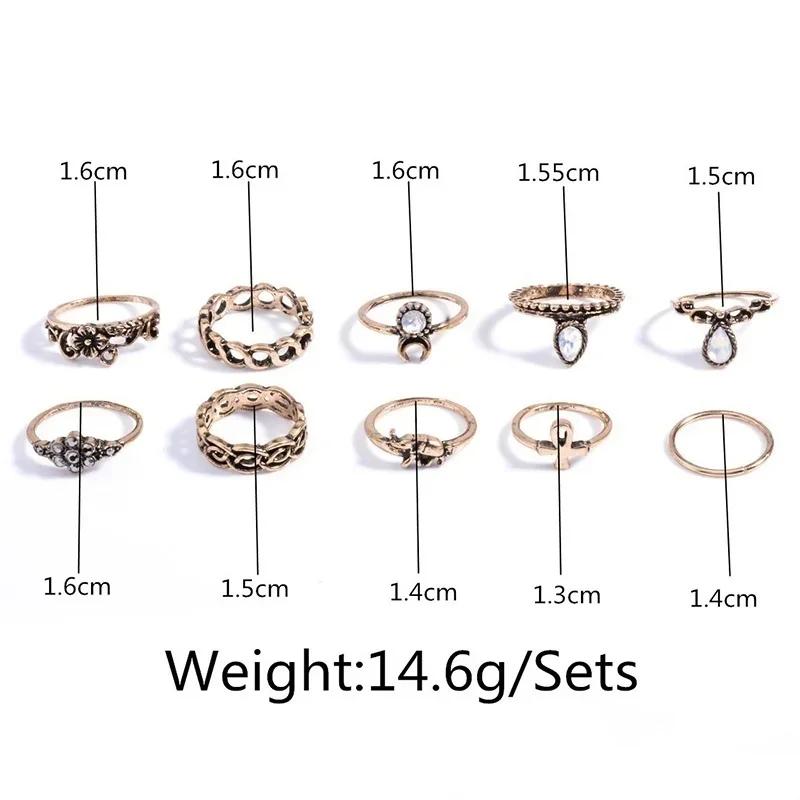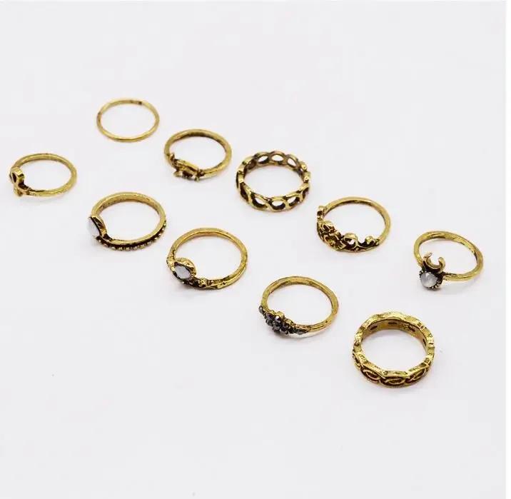 Ретро креативные модные подарки 10 шт. набор золотых бохо модных колец со стрелой и луной на костяшки пальцев ювелирные изделия опаловое кольцо ювелирные аксессуары